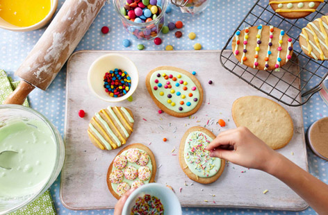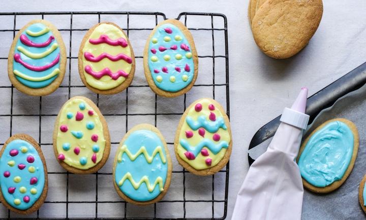 Cuocia i nostri semplici biscotti pasquali, quindi scegli tra due opzioni per decorarli - oppure puoi dimezzare la quantità di marmellata e zucchero a velo e rendere entrambi